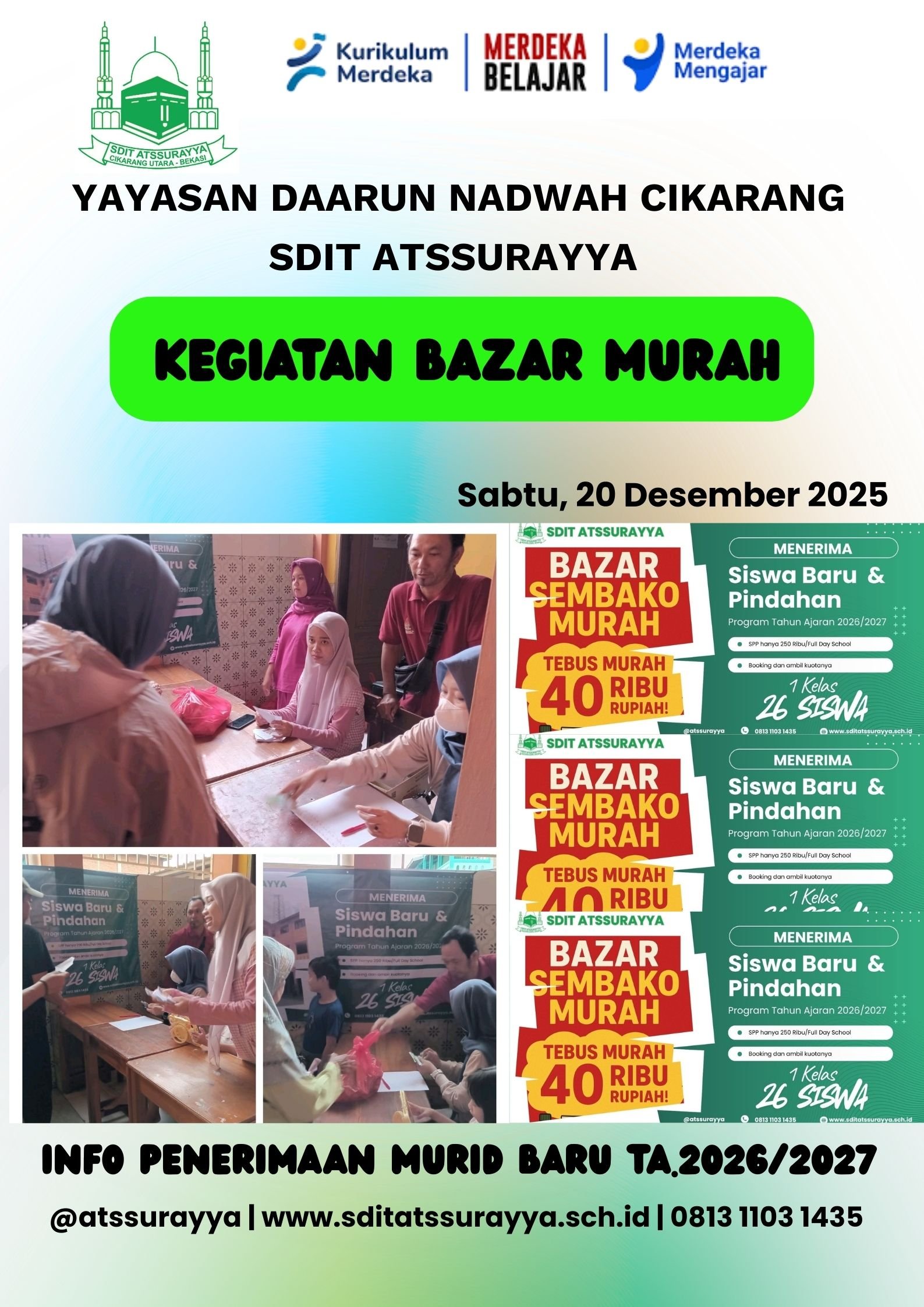 CIKARANG UTARA | anker.web.id –  SDIT ATSSURAYYA menggelar kegiatan bazar murah bagi masyarakat lingkungan sekitar sekolah di wilayah warga RT.002, RT.003, RT.004, Desa Karang Asih, pada Sabtu (20/12/2025). Kegiatan sosial ini menyediakan sebanyak 300 paket sembako yang dapat ditebus dengan harga terjangkau, yakni Rp40 ribu per paket.