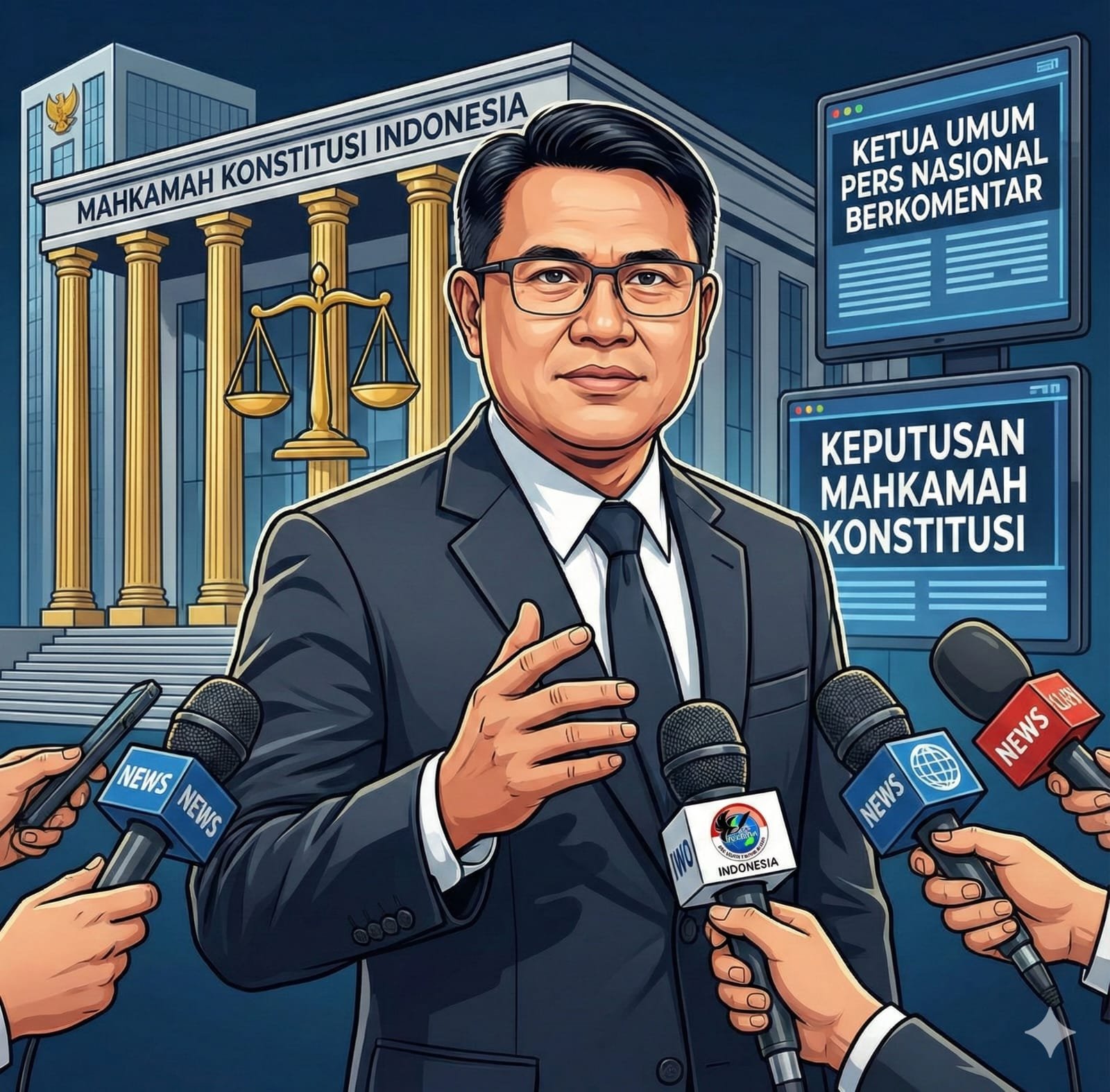 JAKARTA – Dewan Pimpinan Pusat Ikatan Wartawan Online (DPP IWO) Indonesia Dr. NR Icang Rahardian, SH., S.Ak., MH., M.Pd menyambut baik dan memberikan apresiasi setinggi-tingginya atas Putusan Mahkamah Konstitusi (MK) Nomor 145/PUU-XXIII/2025. Putusan ini menegaskan bahwa wartawan tidak dapat langsung dituntut pidana atas karya jurnalistiknya sebelum melalui mekanisme di Dewan Pers.